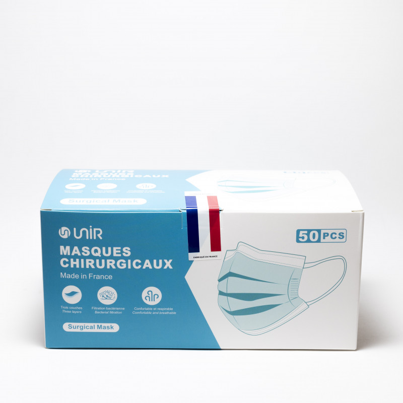 Les masques chirurgicaux à usage unique fabriqués en France sont vendus par boite de 50. Un soin particulier a été apporté au processus de fabrication afin d’avoir des masques de qualité pour garantir une protection optimale.