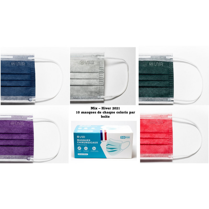 10 masques de chaque coloris / boite (sans sachet)