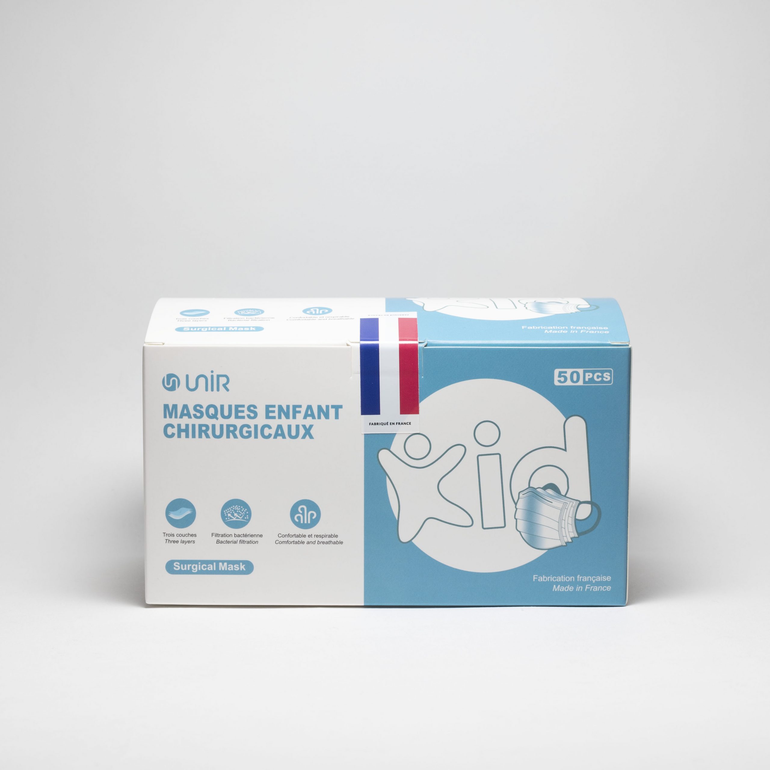 Les masques chirurgicaux à usage unique fabriqués en France sont vendus par boite de 50. Un soin particulier a été apporté au processus de fabrication afin d’avoir des masques de qualité pour garantir une protection optimale.